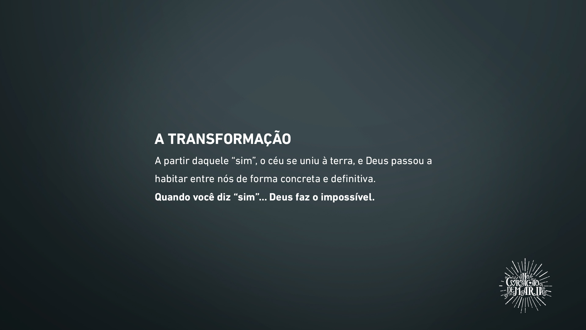 “Eis aqui a serva do Senhor. Faça-se em mim segundo a tua palavra.” Esse “sim” não é apenas uma frase bonita. É um ato de entrega total, de confiança radical, de abandono nas mãos de Deus. A partir desse momento, o Verbo se faz carne, o invisível se torna visível, o eterno entra no tempo, Deus assume um rosto humano. O céu toca a terra… porque uma mulher disse “sim”.