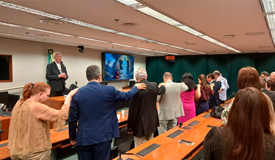Na última quarta-feira, 8 de abril, ele pregou para os deputados federais, seus familiares e assessores da Câmara dos Deputados, dentro da reunião semanal do Grupo de Oração Santa Elena Guerra.